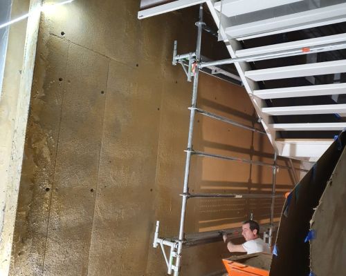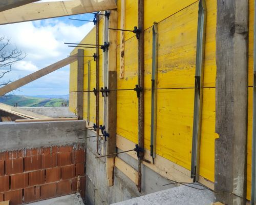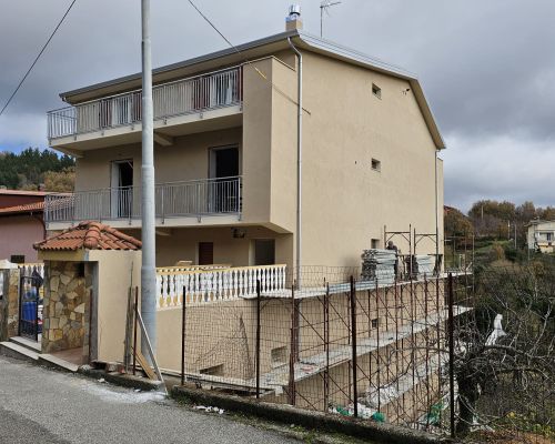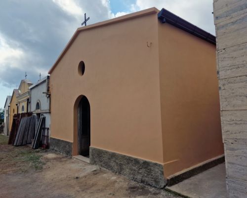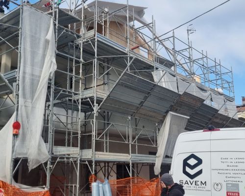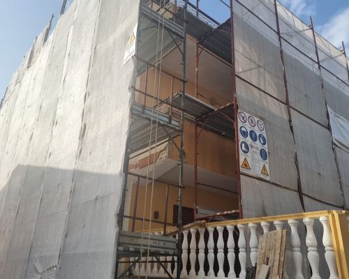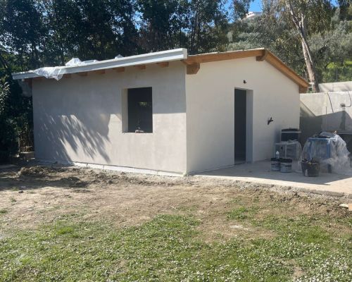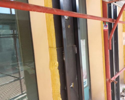 - Isolante termico a cappotto composto da pannello in EPS/XDS/Lana minerale, paraspigoli con la rete e finitura minerale, massetti per interno ed esterno di sabbia e cemento, eseguiti con pompa meccanica,