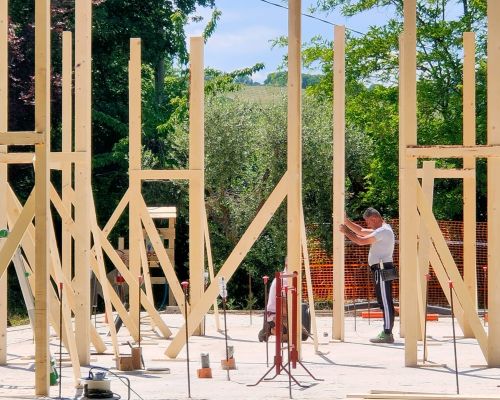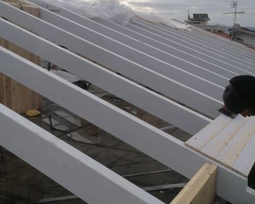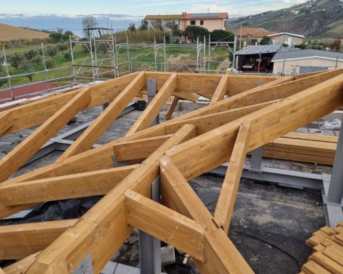 - Strutture in ferro e strutture in legno lamellare di ogni tipo, come casette in Xlam e a telaio e coperture inclinate o curve