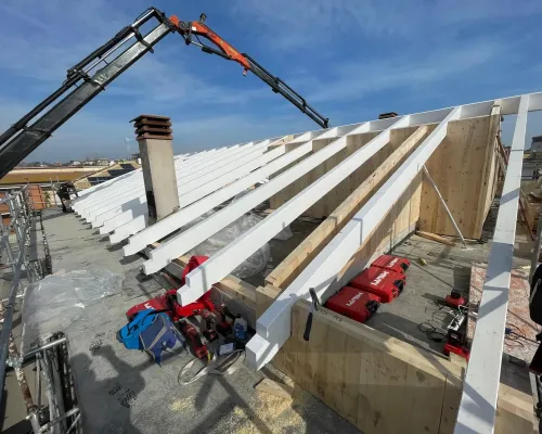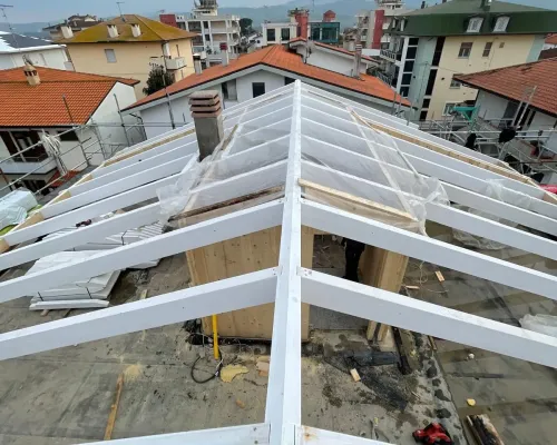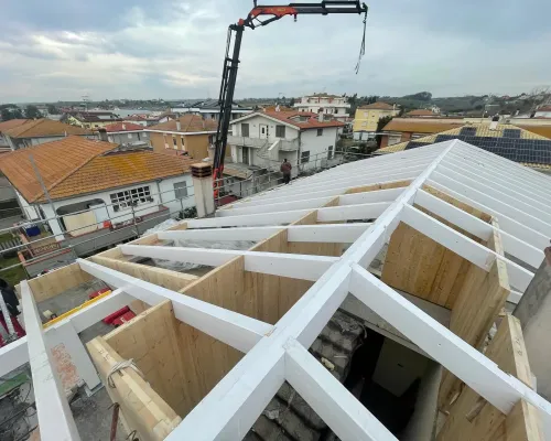 - Strutture in ferro e strutture in legno lamellare di ogni tipo, come casette in Xlam e a telaio e coperture inclinate o curve
